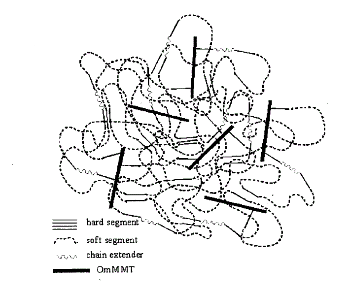 Polymer morphology model according to the invention.  (omMMT = organically modified montmorrilonite)